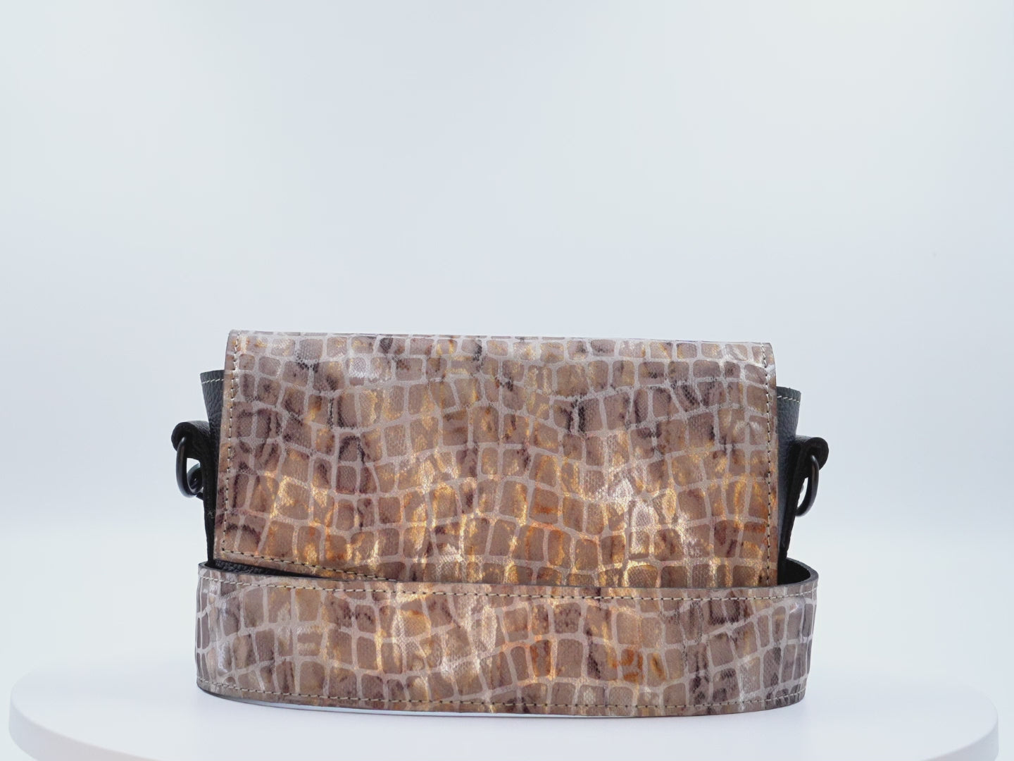 Measuring 25x15.5x6.5cm, it's the perfect size to carry your essentials, such as your phone, wallet, and keys. The bag features an inner zippered pocket for added security, and a magnetic closure mechanism for easy access.